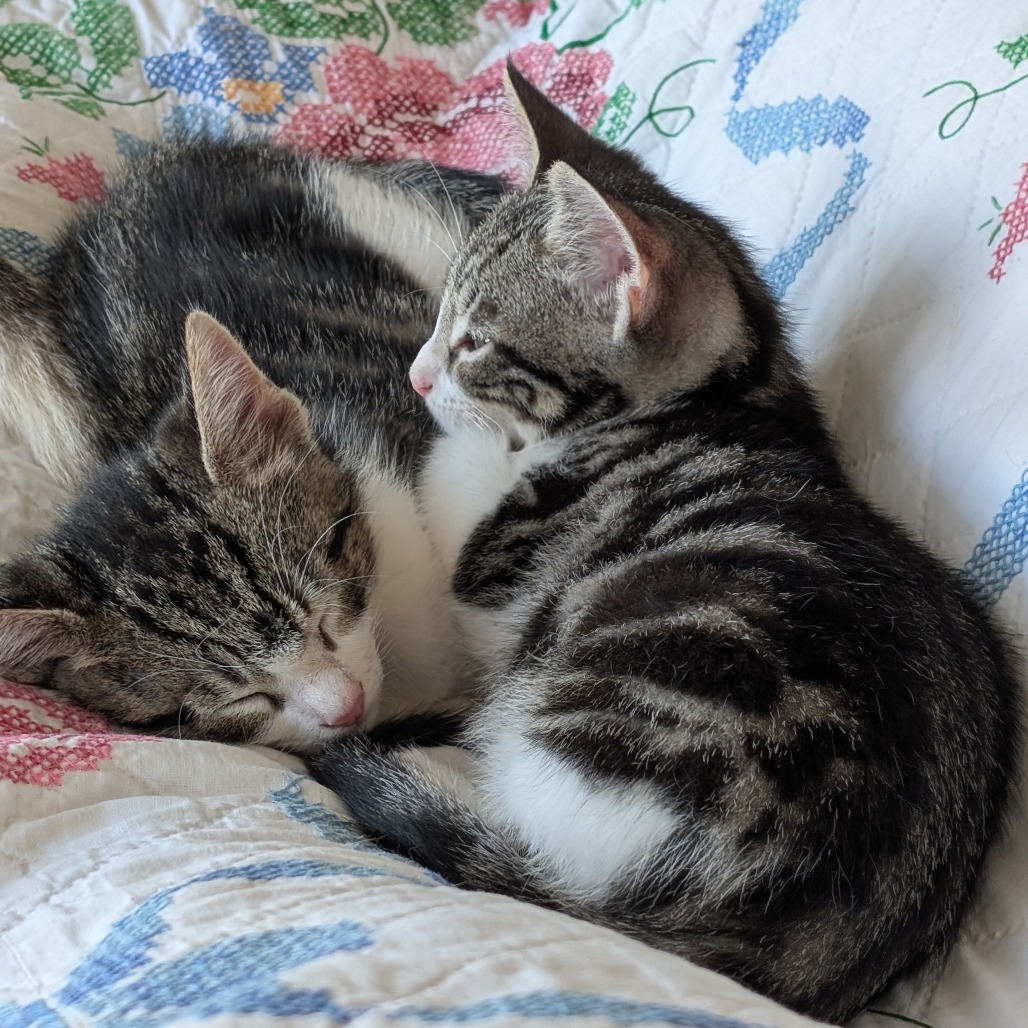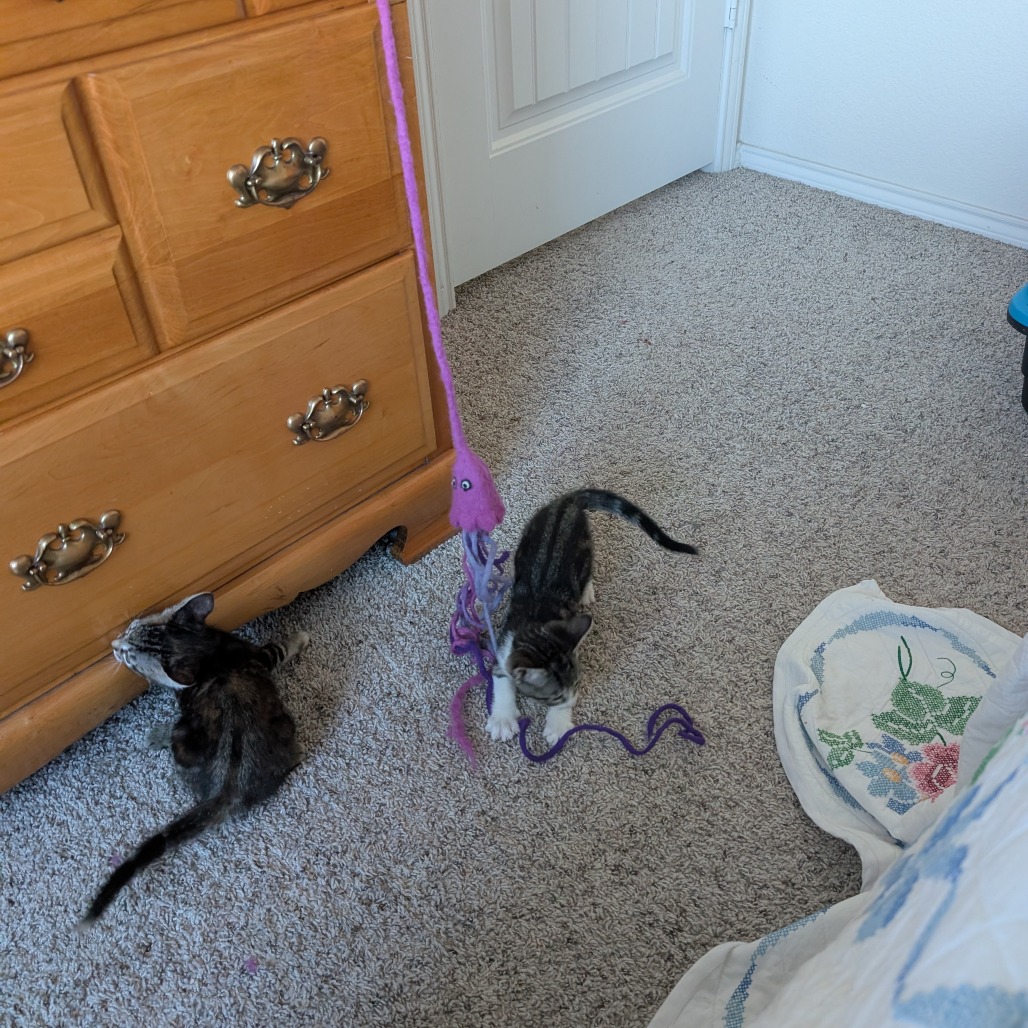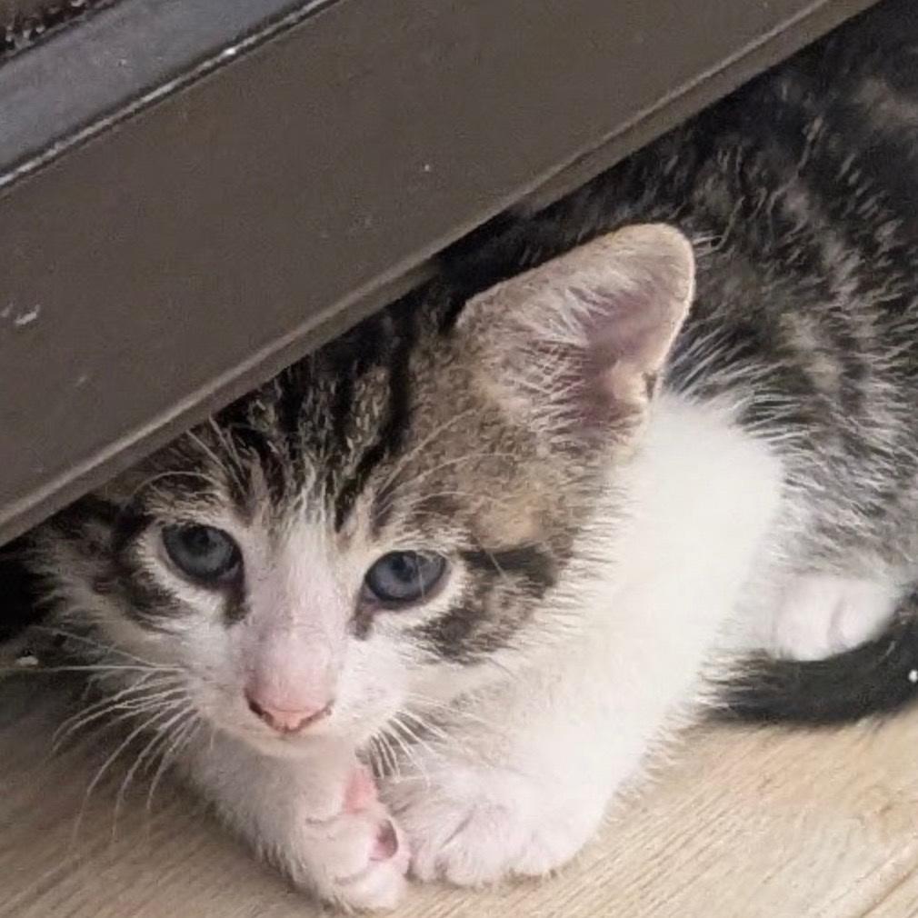 He’s still too young to be around other animals but has taken charge of his siblings. This biggest boy is a gentleman, and Spats is already litterbox trained. Once he’s fully weaned, he’ll be ready to brighten any household.