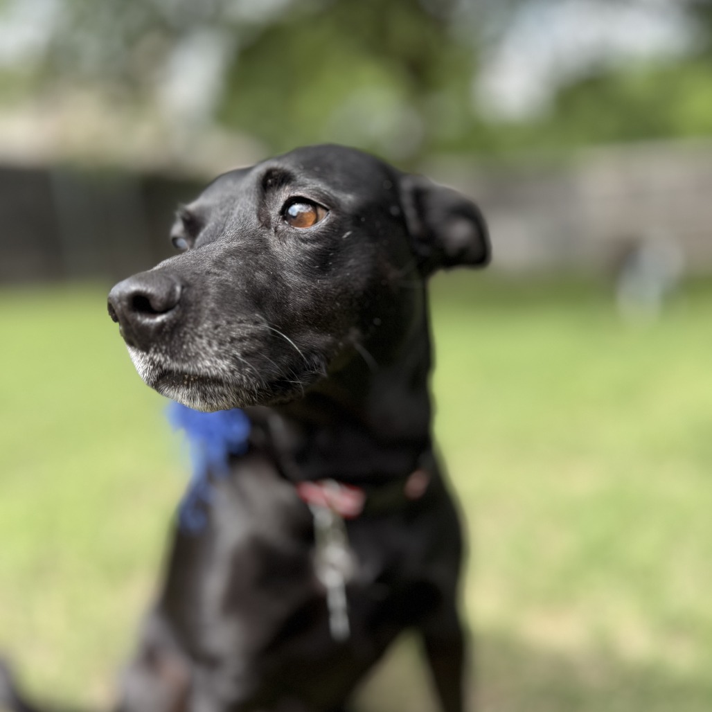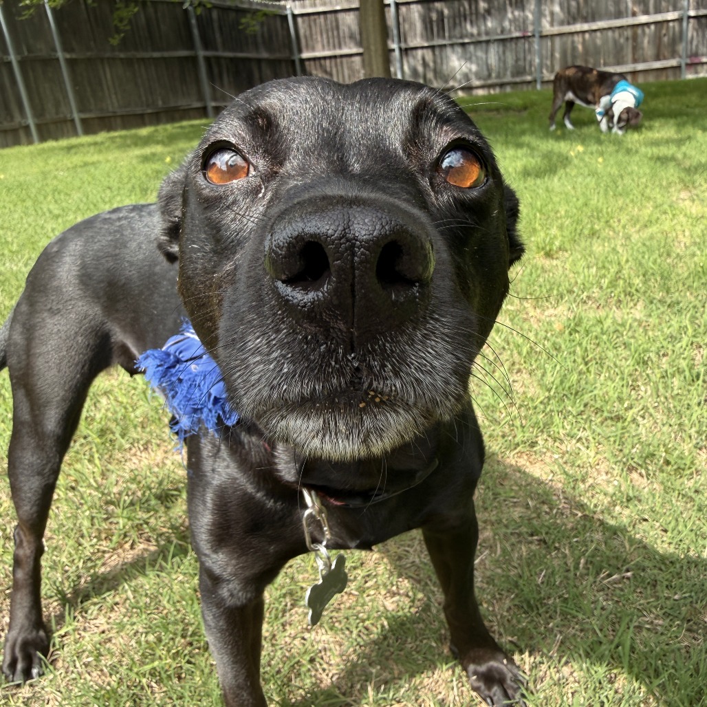 She gets along well with other dogs of any size and would likely thrive in a forever home with a dog buddy, but not a deal breaker if she is an only dog.