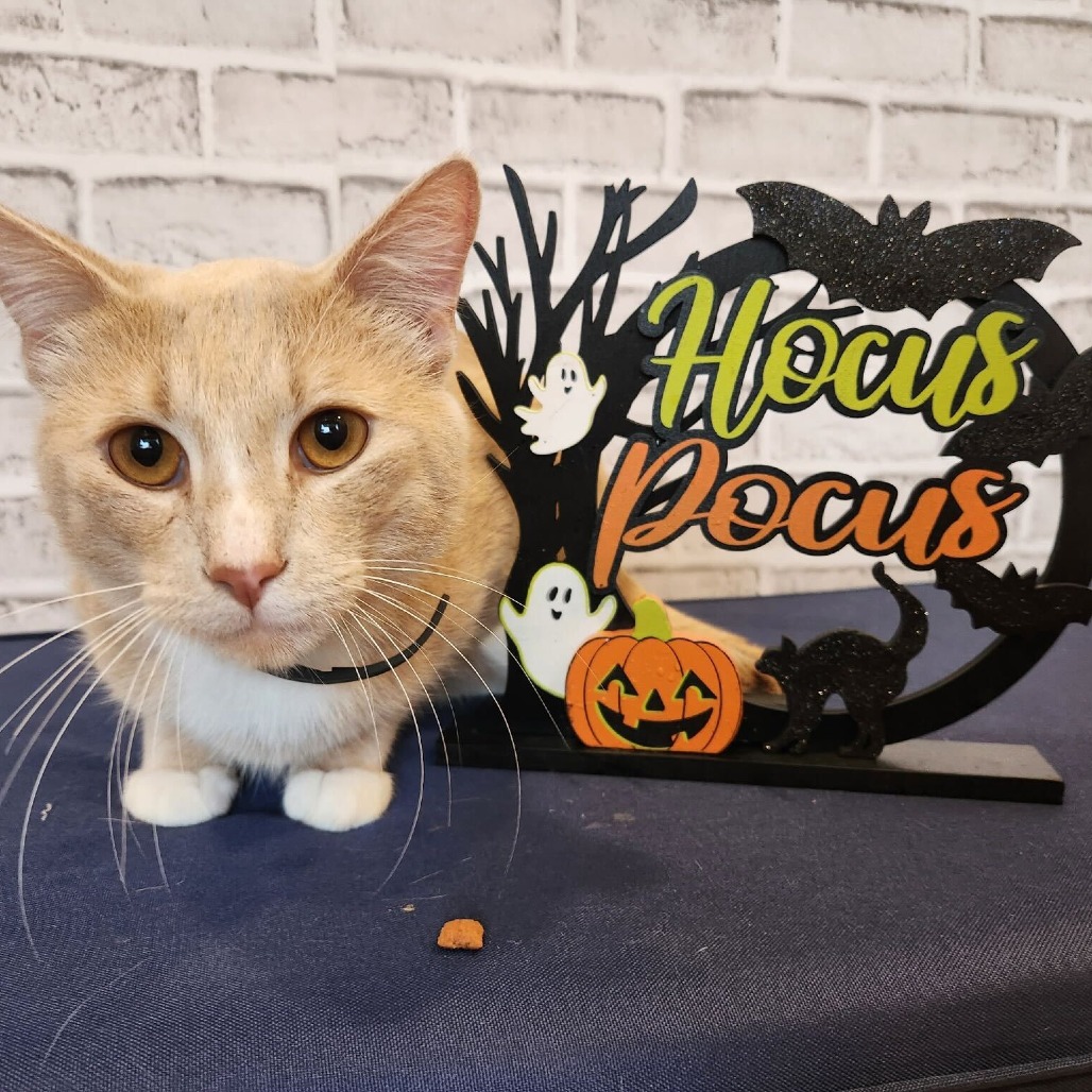 Sunshine is the lighter half of a brother-sister pair with Midnight. The pair are formerly outdoor cats and are adjusting to life on the inside but still hear the call of the wild from time to time and will beg at doors to go outside. He is litter box trained and is quickly learning that a perk of an interior existence is plenty of food and water and he is appreciating that very much.