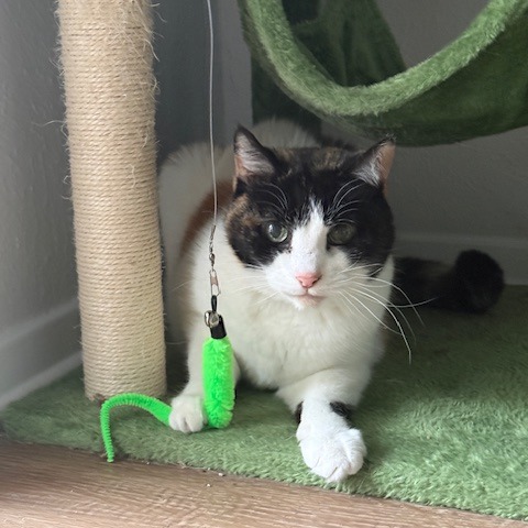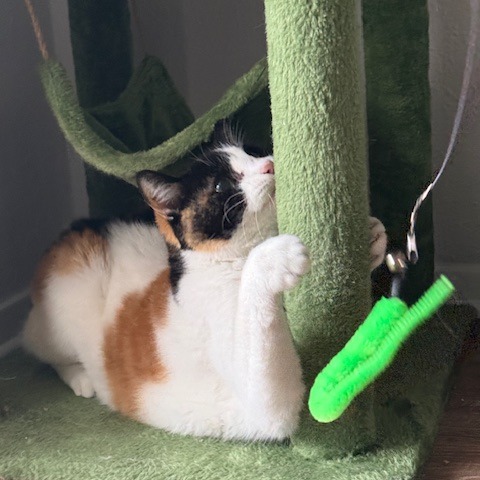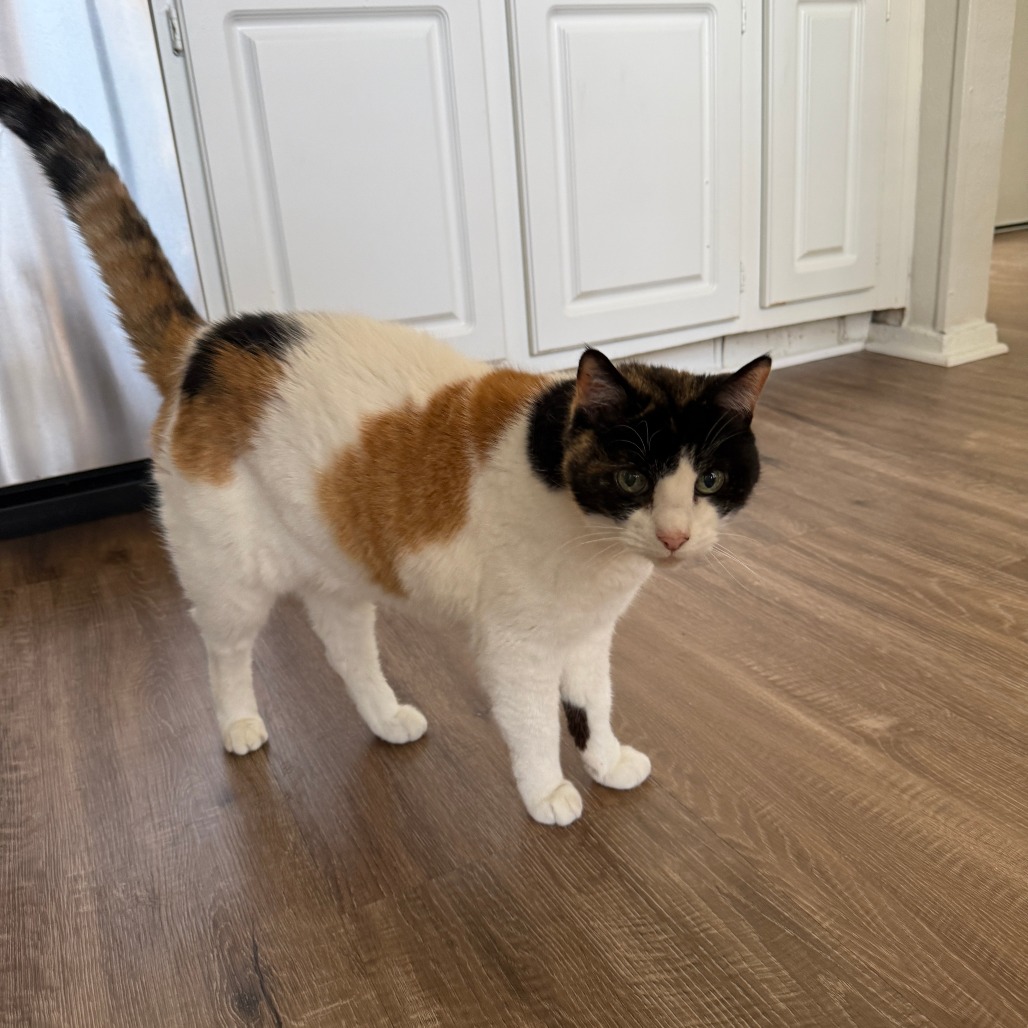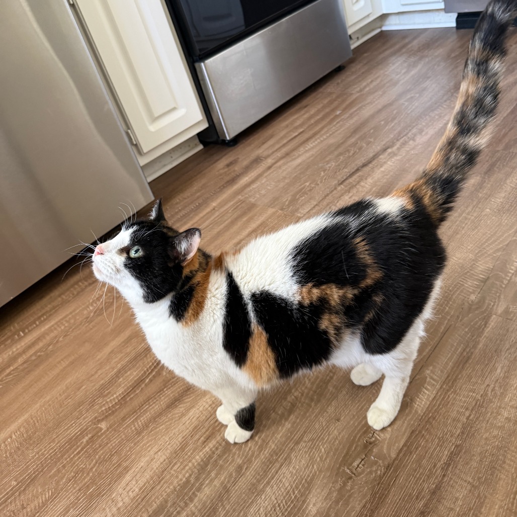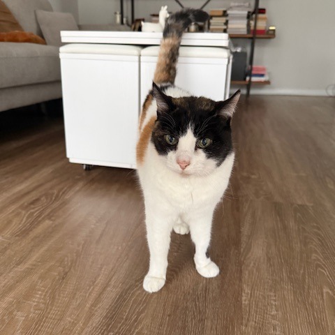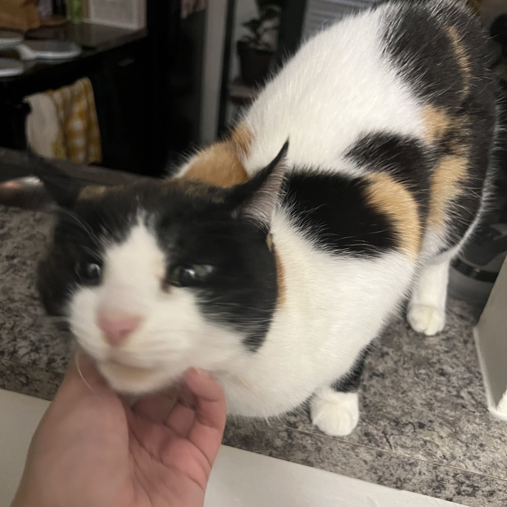 Meet the most petting-obsessed cat you’ll ever know, Theodora! Thea is a 10yr old, 10lbs, female calico with the poise of a feudal era princess. She will prance your way with her tail up in the equivalent of the iconic Princess Diaries hand wave. She originally came from the Pima Animal Shelter in Tucson, AZ and shortly after settling into her new home in 2020 she made the long car ride to Dallas, TX.