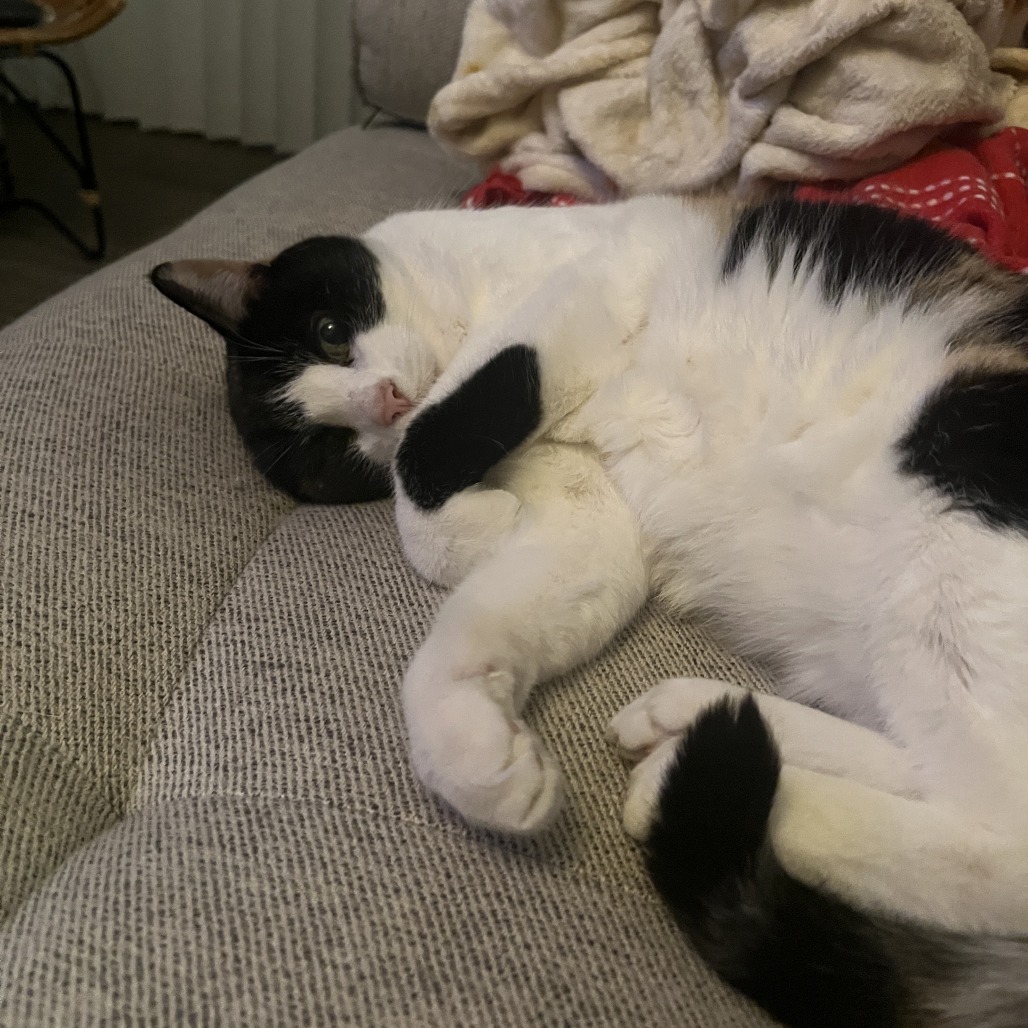 Thea is a calm cat with the occasional zoomies after going potty. She loves nothing more than greeting you at the door, getting her neck scritches, and plopping down right against you on the couch for a slow and quiet night in. She lives with one other cat, but they don’t interact much unless it’s to see who makes it to the feeder faster at meal time or who should get the most attention from their human. An ideal home would be one that is ok with allowing her full access to every amenity her human will be utilizing, doesn’t mind the occasional crying at the closed door in the event she can’t go into the room with them, and is ok with brushing her often (she loves her Furminator!).