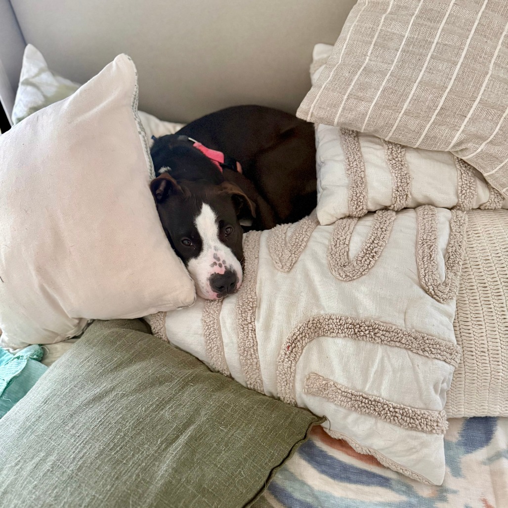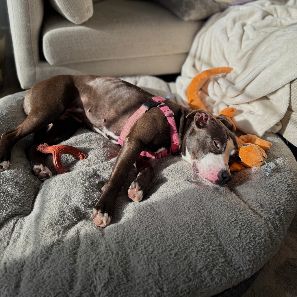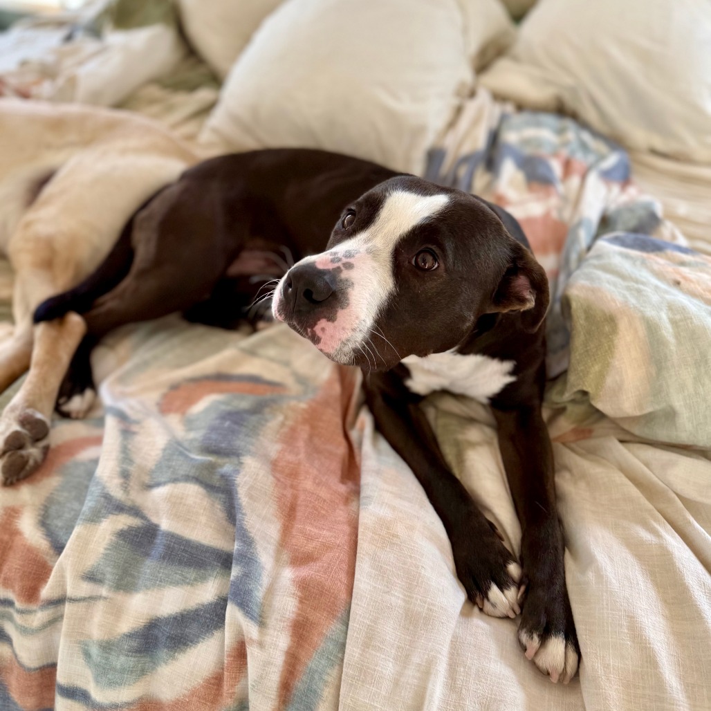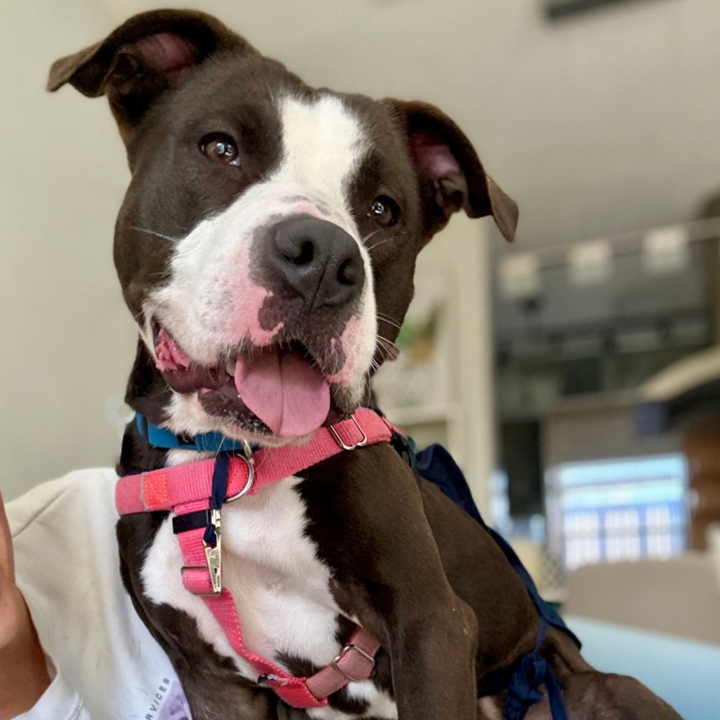 Once upon a time in a land filled with wagging tails and playful barks, there lived a delightful fairy dog named Tinkerbell. At just 18-24 months old and weighing around 45 pounds, this enchanting pup boasts a deep dark chocolate coat that glistens like the finest treasure. With a heart as big as her spirit, Tinkerbell is not only potty trained and crate trained, but she also knows how to sit like a true fairy princess. While she may have a bit of a playful pull on the leash, she’s always eager to explore the world around her, ready to embark on grand adventures with her forever family.