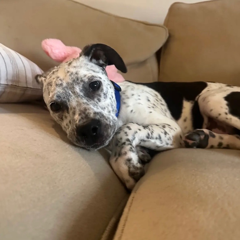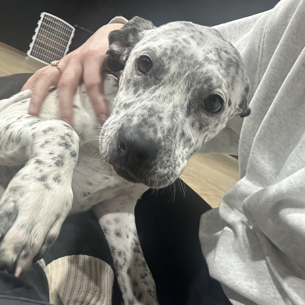 She does great with dogs and kids, loves to play, and also enjoys lounging around for a good nap. Valentina is easygoing, low energy, and happy with a simple routine. She’s doing well with potty habits and settles nicely in a crate during the day.