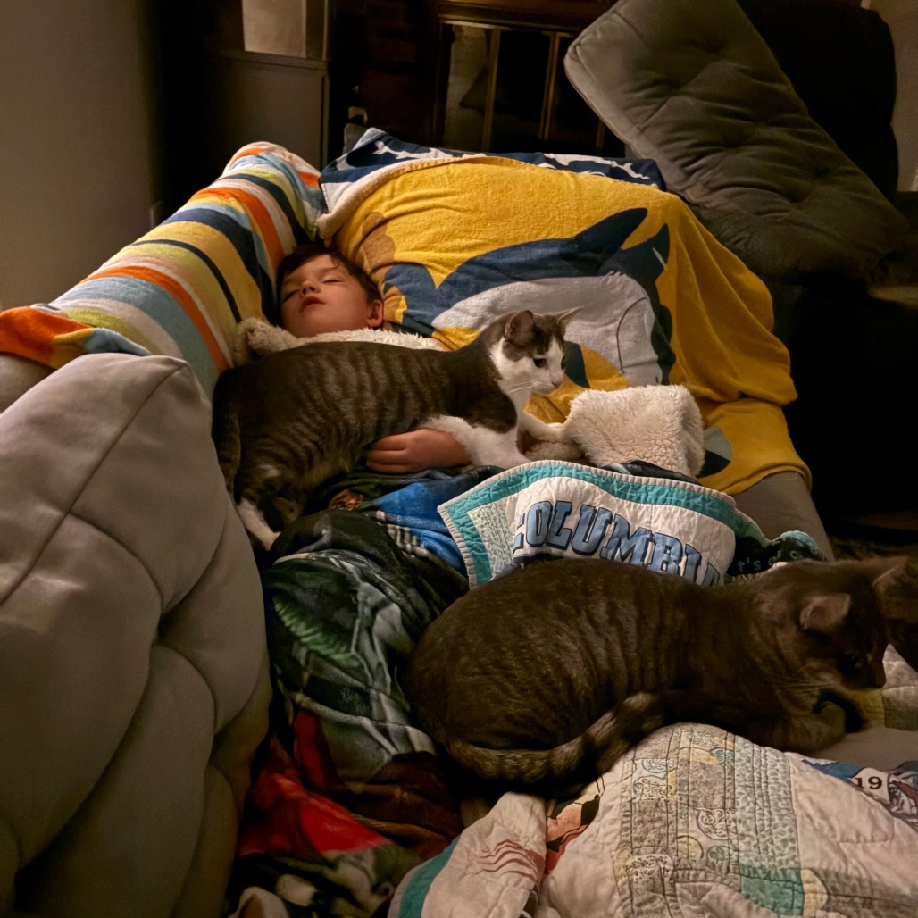 Wallace is equally happy frolicking with other pets, being held like a baby for tummy rubs, or chasing a feather toy. He can be goofy and is quick to purr, slow to stop and is comfortable showing and receiving affection.