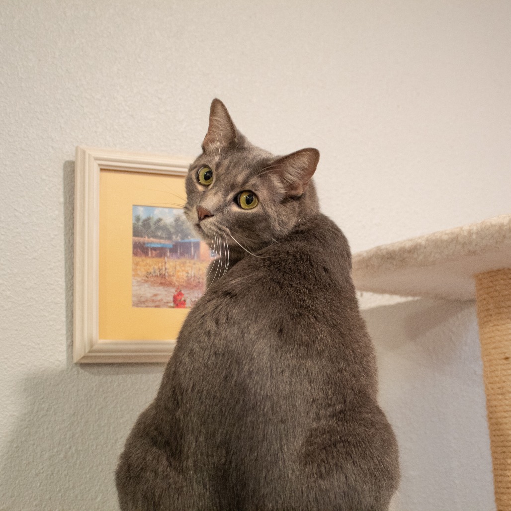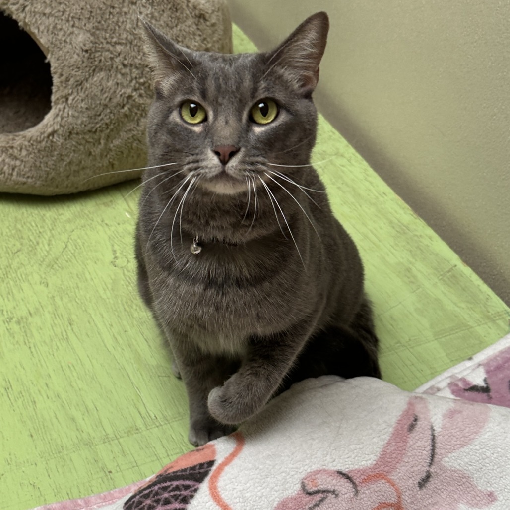 Breezy Wilo is a sweet and lively cat who brings energy and affection wherever he goes. He’s a curious explorer, always eager to discover new things and entertain himself with anything whether it’s toys, catnip, water, or just a cardboard box! Wilo’s playful antics, like chasing his own tail and tossing his toys in the air, are sure to bring smiles to anyone lucky enough to meet him.