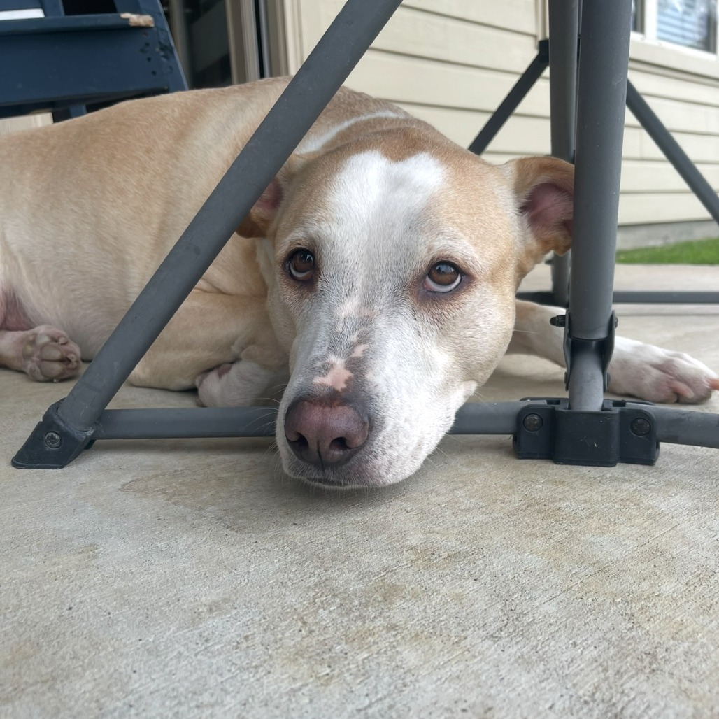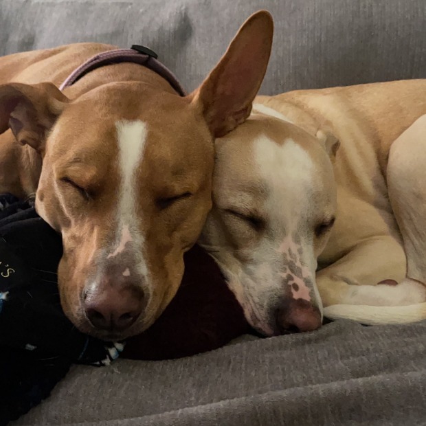 She’s a gentle 5-year-old, 75-pound pup with a beautiful light-colored coat and a heart full of love. Willow is Maple’s sister, and while they share a love for food and play, Willow has a slightly more reserved personality that makes her extra sweet.