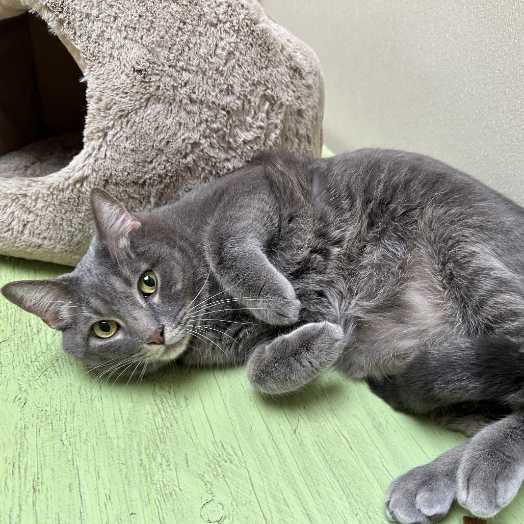 Breezy Wilo is a sweet and lively cat who brings energy and affection wherever he goes. He’s a curious explorer, always eager to discover new things and entertain himself with anything whether it’s toys, catnip, water, or just a cardboard box! Wilo’s playful antics, like chasing his own tail and tossing his toys in the air, are sure to bring smiles to anyone lucky enough to meet him.