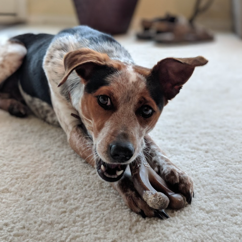 I am friendly but can be leash reactive, meaning I may bark or pull toward other dogs on walks, but we’re actively working on it. I am also a bit of a counter surfer (I am very food motivated!) but am also working on it. I do great with kids of all ages. I have grown up with two kids from their birth. I have no history of nipping.